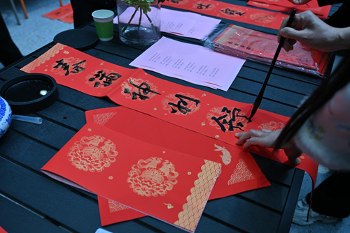 活動當(dāng)天,鄭州市文聯(lián)的書法家們受邀來到現(xiàn)場。他們個個精神飽滿,手執(zhí)毛筆,在一張張紅紙上揮灑自如,書寫著寓意深遠的新年序言。這些序言既是對過去一年的總結(jié),也是對新年的美好期許。書法家們的精彩表演贏得了現(xiàn)場觀眾的連連稱贊,租戶們紛紛表示:“書法家們寫的字真是太好了!‘福’字看著就喜慶,春聯(lián)的寓意也都非常美好。”