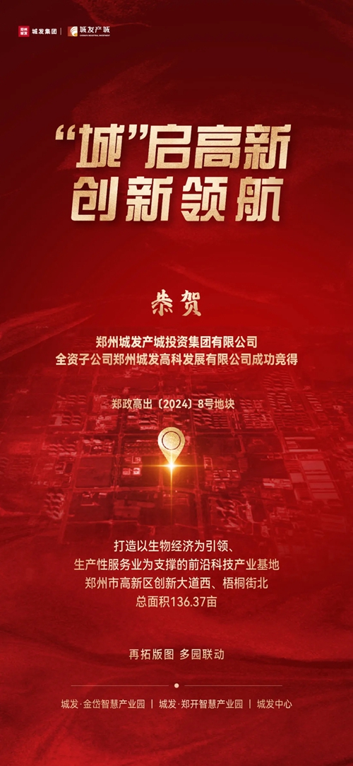 9月29日,鄭州城發(fā)產(chǎn)城投資集團有限公司全資子公司鄭州城發(fā)高科發(fā)展有限公司成功競得鄭政高出〔2024〕8號地塊,該地塊位于鄭州市高新區(qū)創(chuàng)新大道西側(cè)、梧桐街北側(cè),為一類工業(yè)用地(小微企業(yè)園用地),總面積136.37畝。