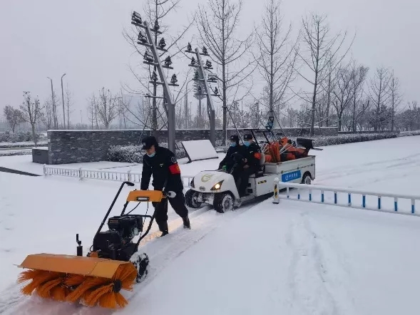 2022年1月19日,河南省氣象臺發(fā)布暴雪藍(lán)色預(yù)警,為應(yīng)對2022年二次來襲的暴雪,鄭州奧林匹克體育中心立即啟動應(yīng)急預(yù)案,實行責(zé)任區(qū)劃分和全員義務(wù)清理相結(jié)合的原則,所有人員“以雪為令,即下即清”,全面出動快速打響清雪除冰戰(zhàn)役,圓滿完成了本次鏟冰除雪工作任務(wù)。